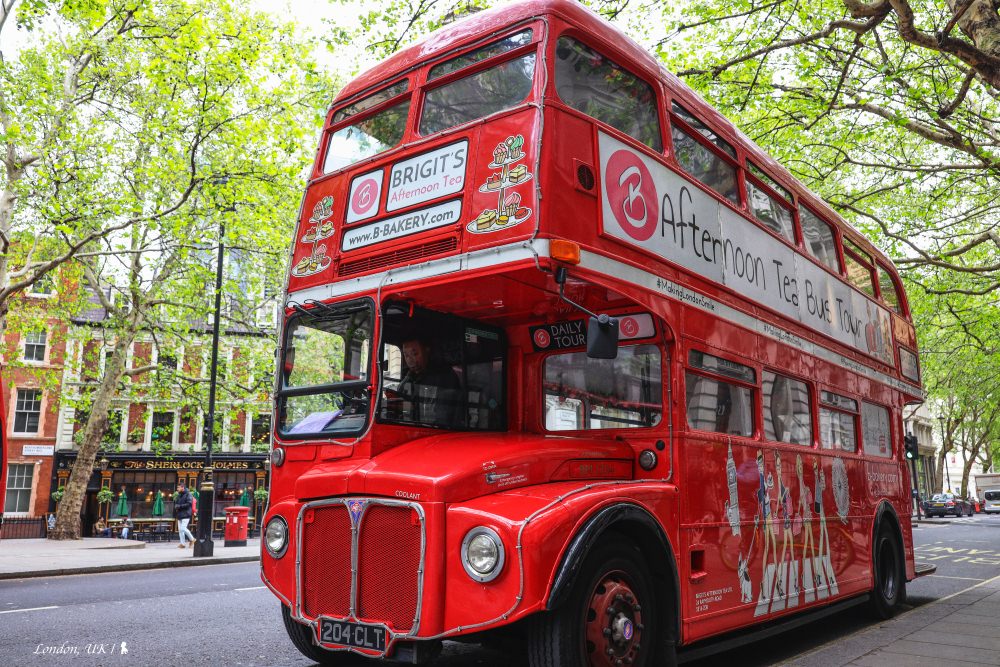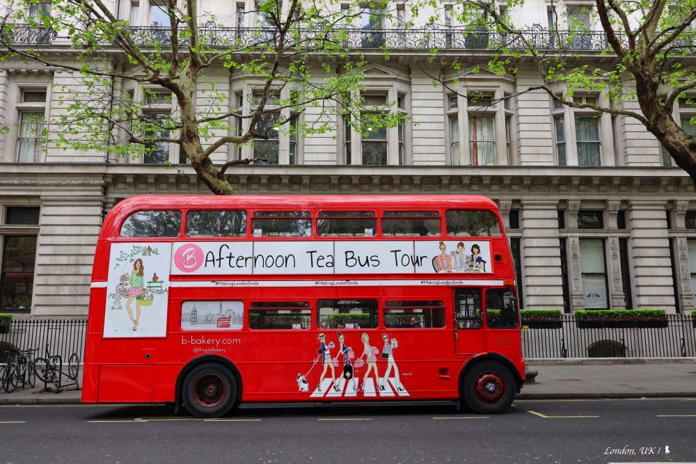 ⇑ 鮮紅色的下午茶巴士配上嫩芽春綠,構成一幅美好的倫敦初夏