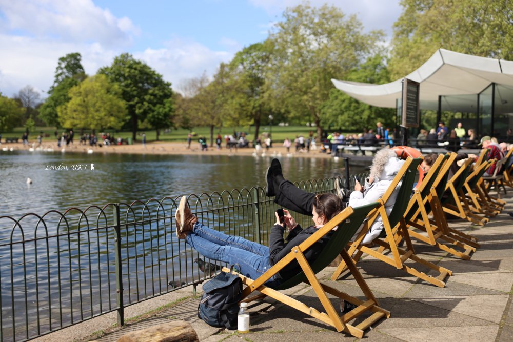 倫敦的夏初散策,哪能少得了海德公園。曾經是倫敦最大的皇家庭園,在 17 世紀中葉開始對公眾開放。曾被亨利八世作為狩獵場的海德公園佔地廣闊,面積超過五個大安森林公園。五月初的倫敦陽光多是燦爛,但老先生偶爾還是有自己的古怪脾氣,行走至黛安娜王妃紀念噴泉,忽然一陣急雨把我困在大傘般的樹下,這份還不至狼狽的意外讓我正好能好好欣賞這座造型特別的噴泉。在 Gustafson Porter + Bowman 事務所的巧思設計下,以「敞開雙臂 – 懷抱」為概念,將噴泉以環狀設計,順著海德公園的地勢起伏,經過精密計算讓水以不同速度奔流在花崗岩上並呈現水的不同姿態,來呼應黛妃ㄧ生,是相當有寓意的親水空間。才等約莫五分鐘突然又再放晴,繼續走向九曲湖邊,不怕人的天鵝與大小雁鴨在湖畔,曬熱了就下去泡泡水,一旁的人們也同樣怡然自得。夏季到這,除可划船還能把握夏天期間限定的湖面泳池,只要 4.8 英鎊,就有機會與天鵝同游。大概是被陽光曬得開心了,幾個女生坐在草地上唱起歌,不遠處還有兩個男生在樹下打盹,更多人是聚在湖畔咖啡館,爭相坐在沒有樹蔭的陽光下,享受這份明媚。