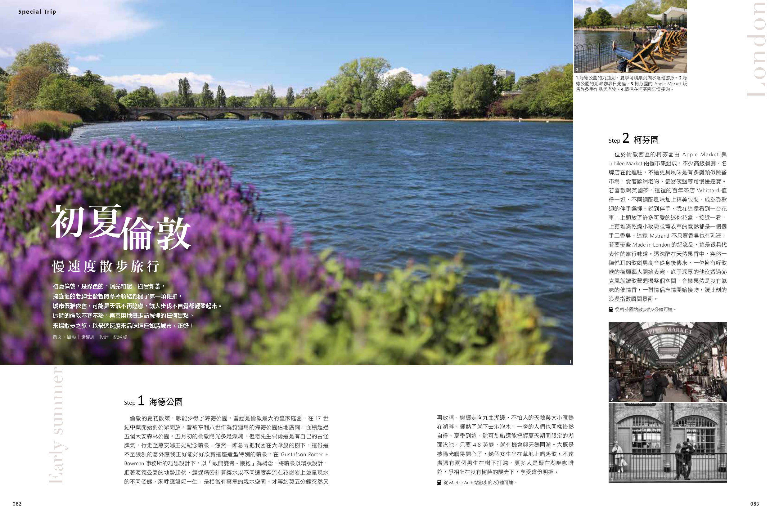 初夏倫敦,是綠色的,陽光和暖、樹冒新葉,拘謹慣的老紳士像暫時拿掉領結鬆開了第一顆鈕扣,城市優雅依舊,可能是天氣不再陰鬱,讓人步伐不自覺都輕盈起來。這時的倫敦不寒不熱,走起路舒服的不悲不抗,若再善用 11 線共 270 站的地鐵,幾乎就能走訪城裡的任何景點。穿上好走的鞋來場散步之旅,以最適速度來品味這座如詩城市,正好!