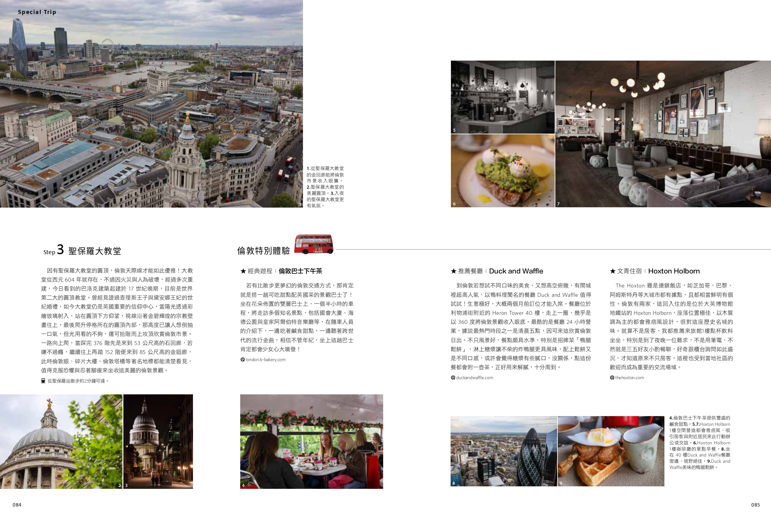 到倫敦若想試不同口味的美食、又想高空俯瞰,有間城裡超高人氣、以鴨料理聞名的餐廳 Duck and Waffle 值得試試!生意極好,大概兩個月前訂位才能入席。餐廳位於利物浦街附近的 Heron Tower 40 樓,走上一圈,幾乎是以 360 度將倫敦景觀收入眼底。最酷是餐廳 24 小時營業,據說最熱門時段之一是清晨五點,因可來這欣賞倫敦日出。不只風景好,餐點都具水準,特別是招牌菜「鴨腿鬆餅」,淋上糖漿讓不柴的炸鴨腿更具風味,配上鬆餅又是不同口感,或許會覺得糖漿有些膩口,沒關係,點這份餐都會附一壺茶,正好用來解膩,十分周到。