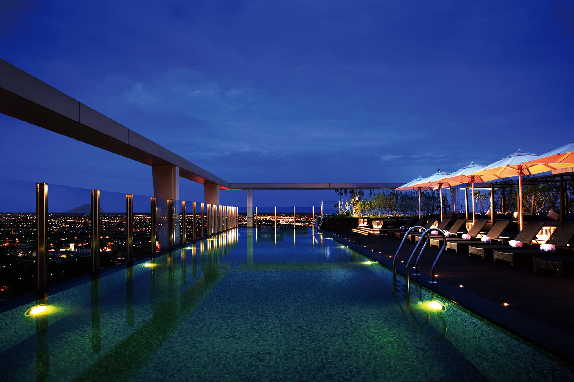 ⇑ 頂樓可眺望龜山島的露天泳池,夜晚會播放星空電影院(照片取自礁溪晶泉丰旅官網)