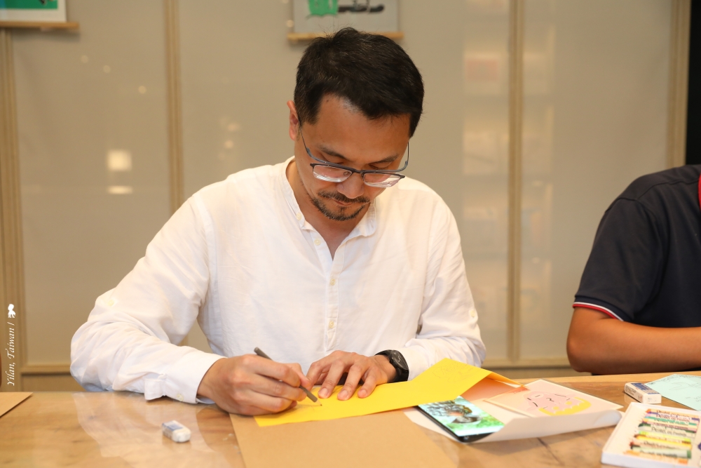 傍晚 check-in 酒店,剛好是酒精飲料暢飲的 Happy Hour,不過我選了消暑的無酒精飲料,因為要保持清醒,有個創意工作坊正等著。這段期間,飯店邀請到插畫設計者 – 章芙菱駐村,她在「泉咏 Gallery」的展出直到 2020.6.30。這日她帶我們創作折疊卡,使用 4 種系列圖案來講故事,第一次嘗試,蠻有挑戰。創作的靈感來自生活,最後,我以日前拍攝的淡水屯山阿嬤為主角,畫出利用一顆南瓜,所創作的三種不同料理,包括南瓜披薩、南瓜拿鐵冰沙還有南瓜德式鬆餅,以此來表現我共同發起的「淡水南瓜食驗生活節」這波美食新文藝復興運動的食物設計創意精神!