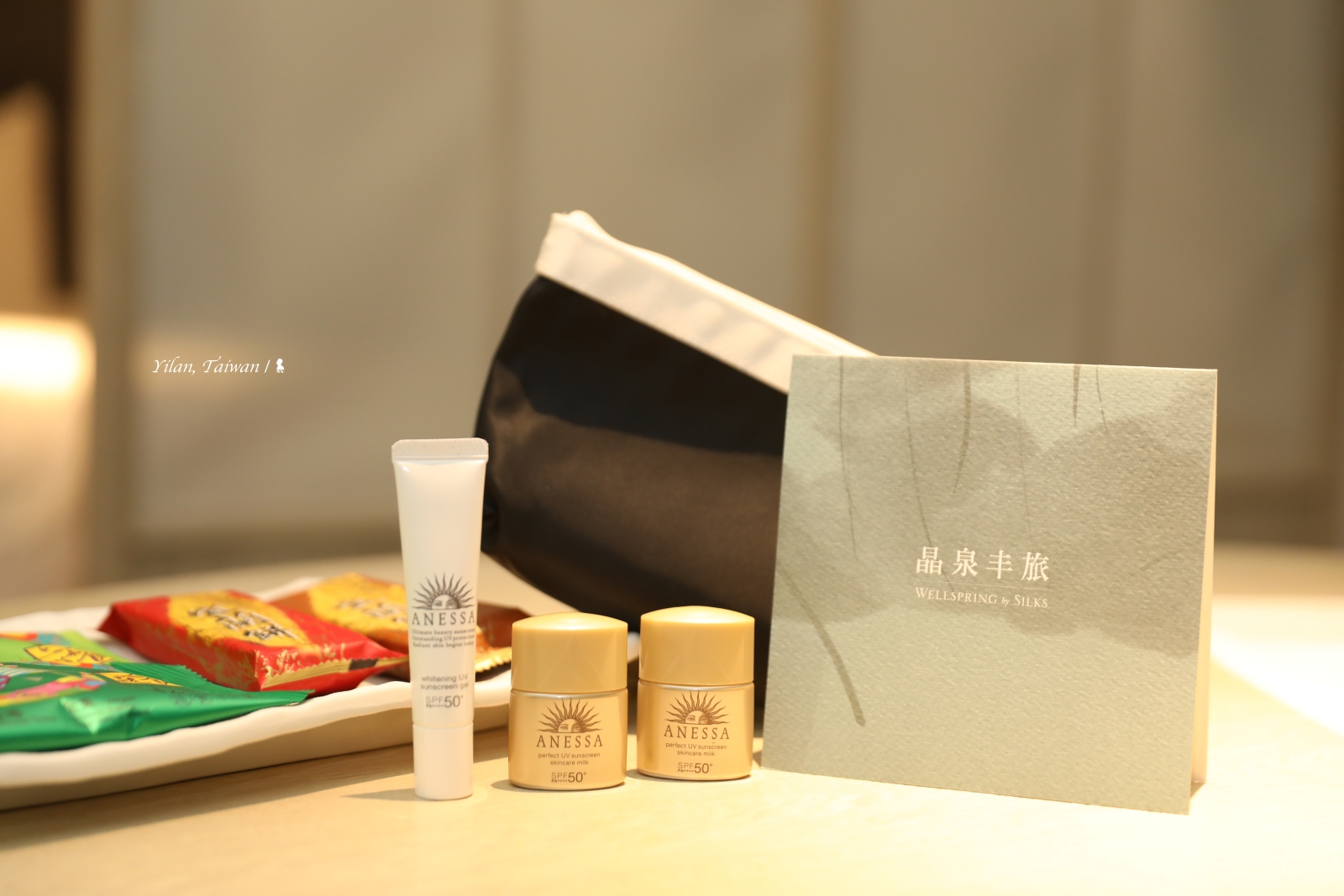房間茶几,我發現上頭放了「安耐曬防曬旅行組」,那是送給參加「夏炙。享山海」 專案、報名極限海上活動房客的秘趣好物,相當實用,也彷彿預告了隔日體驗 SUP 立槳所將曝曬的烈陽。而若是報名山的行程,則是帶領攻頂最近很夯的抹茶山,贈送的秘趣好物也相當符合主題,是〈TSUJIRI 辻利茶舖〉梅之白抹茶粉,很具誠意!