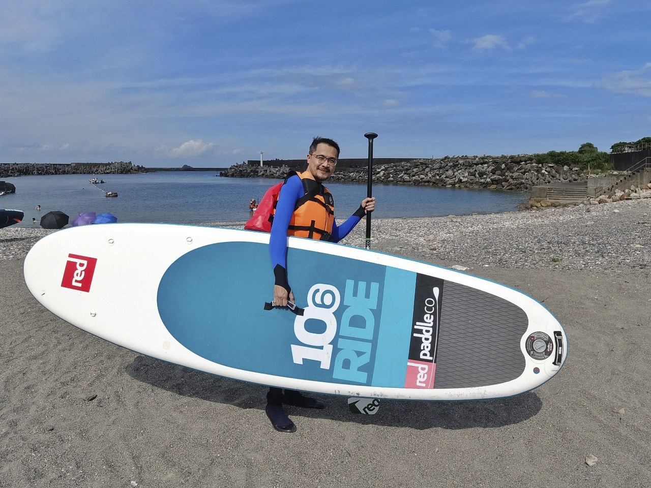 SUP 是在南方澳豆腐岬體驗,兩人一板兩槳,整個體驗行程約 2.5-3 小時。這是我第一次玩 SUP,因划過獨木舟也玩過一次衝浪,因此不算陌生,不過整趟玩下來,還是蠻累,若要體驗,建議安排兩晚住宿,把這項活動排在第二天,回去飯店後,再帶著痠疲身子泡溫泉,那才叫一整個舒爽!