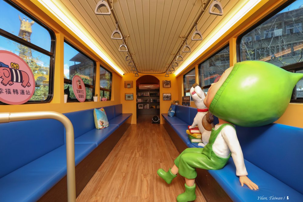 宜蘭最新熱門打卡點,竟是一台沒有發車時刻表的巴士?高人氣景點「宜蘭幸福轉運站」這個夏天讓幸福再升級!像從幾米繪本駛出的彩繪巴士停靠轉運站,上了車,溫暖的鮮黃色讓車廂內彷彿灑滿陽光,只見幾米繪本《忘記親一下》的兩位主角:小樹與布丁狗已率先乖巧坐定位,沒意外、這成了乘客爭相合影的園區新拍照打卡點。