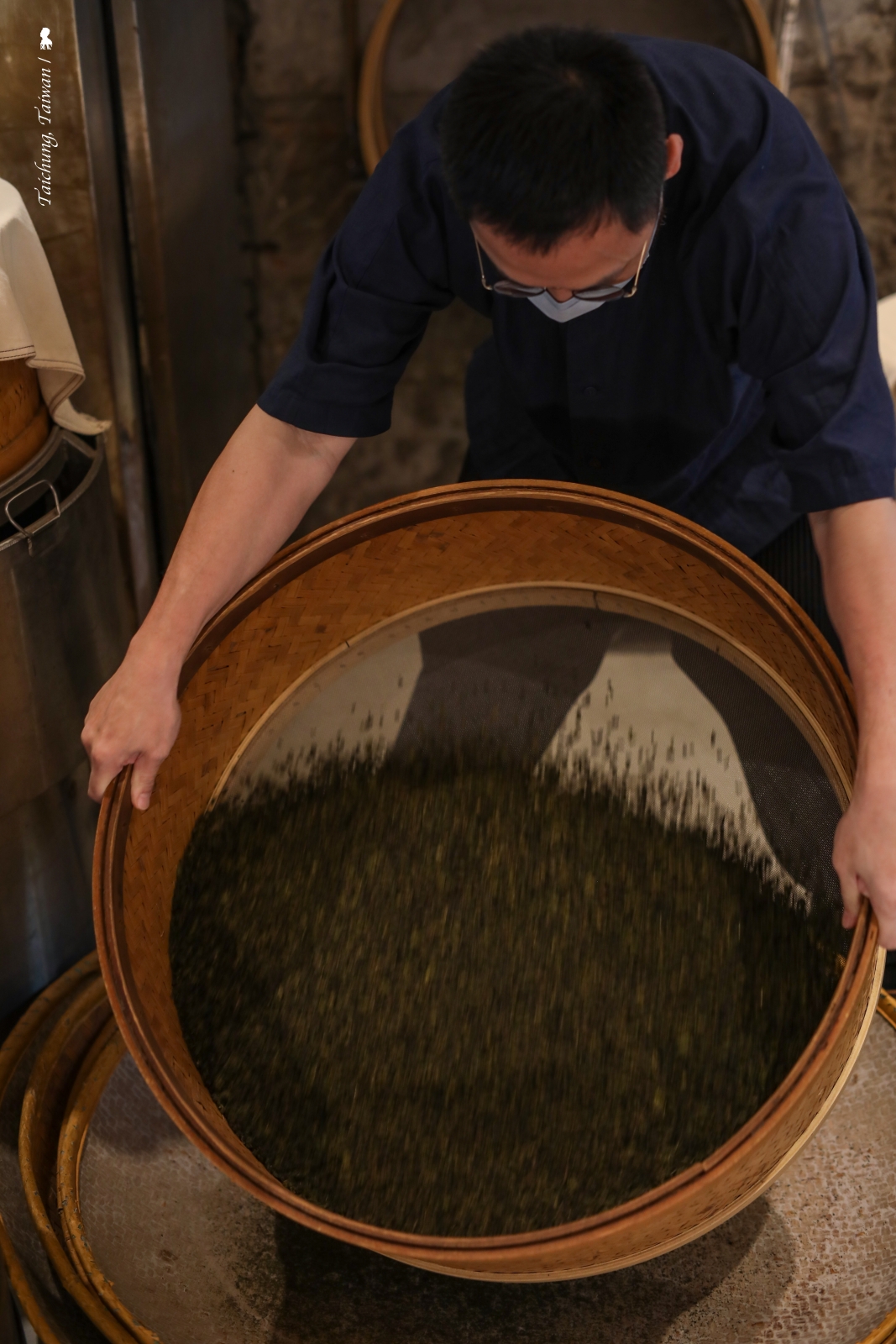 後來才知道,我登門的星期天是店裡固定公休日,Scott 見我不好意思便說剛好也要來店裡焙茶,手一指就在一樓後方用透明玻璃相隔的烘茶室,帶我走近一聞,果然飄來了一陣香甜乾茶香讓我眼睛都笑瞇了。這日下午,我在他笑說要頻率對的客人才會安排入座的吧台,沒有拘束的享受一款又一款的好茶,從大禹嶺 2021 冬茶、冷熱雙泡使用台茶21號製造的白茶、金萱、東方美人到耘山,他泡的專注,我也品的認真,這樣的交流實在難得也幸福。等多聊一些,Scott 透露說其實去年就從一篇我寫的虹夕諾雅 谷關文章認識我,說到底,我真要感謝虹夕諾雅 谷關,不光是透過他們才讓我知道台中藏有這麽一處老屋新茶,也因此讓我有榮幸能受邀包場,度過這段難忘的茶香天光。
