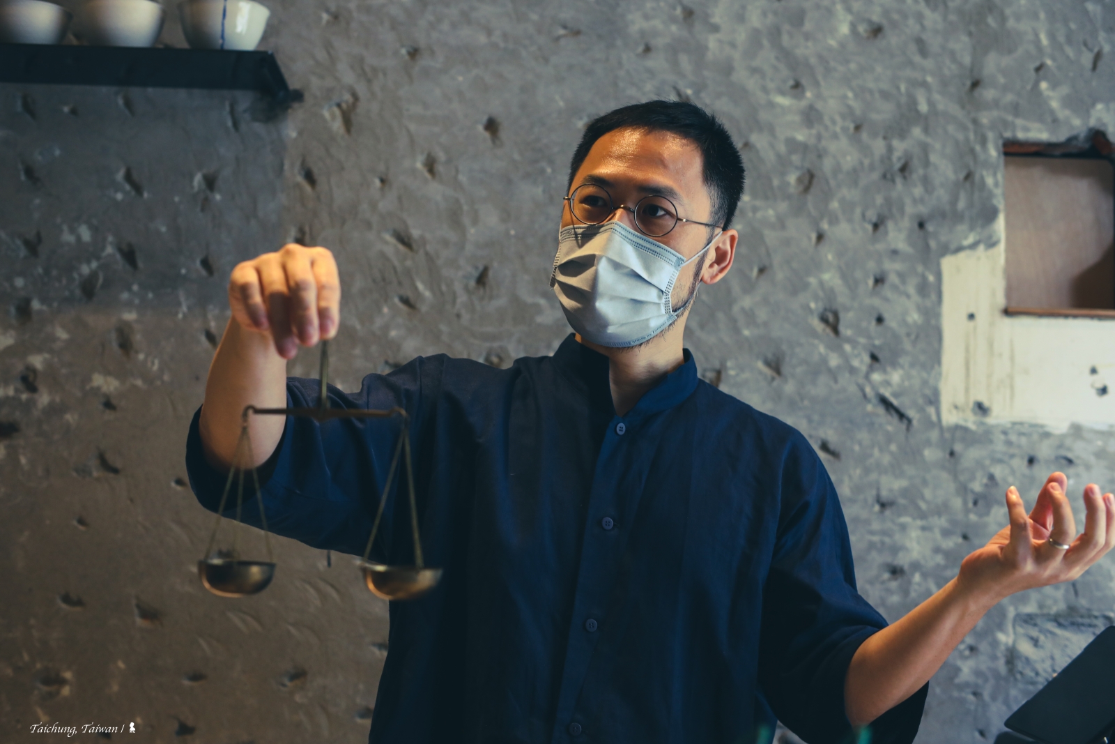 ⇑ 被我好奇挖出的牆上隱藏版風景,是只老秤,Scott 用來提醒自己賣茶要誠信以待