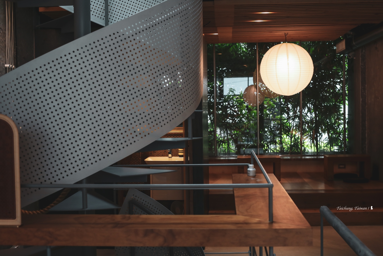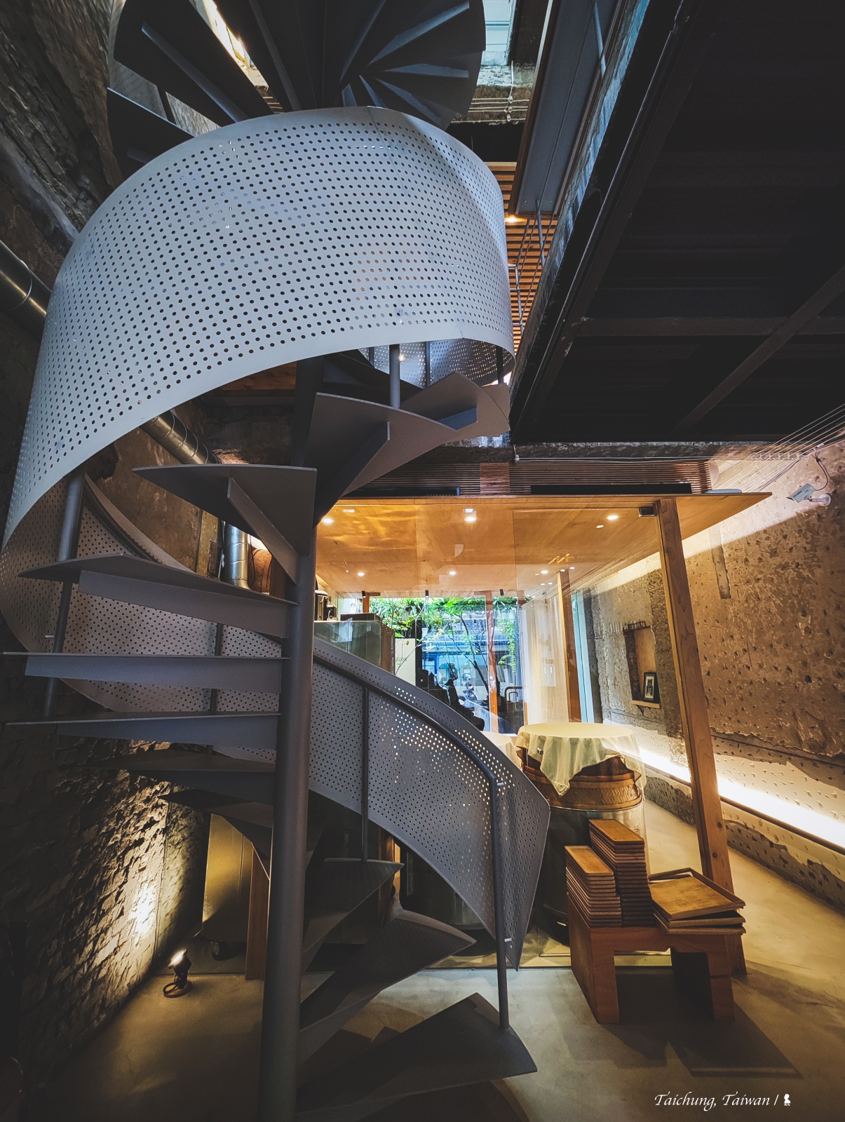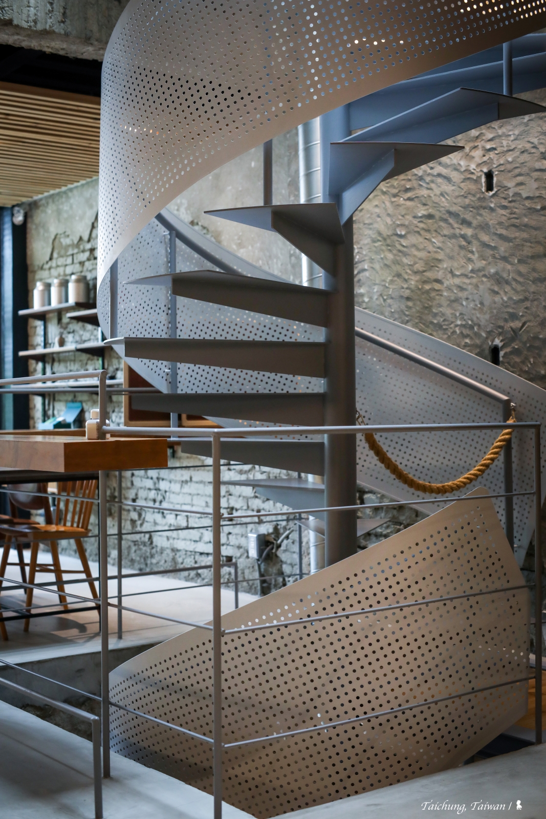 ⇑ 優美的灰白色鐵梯連接一二樓